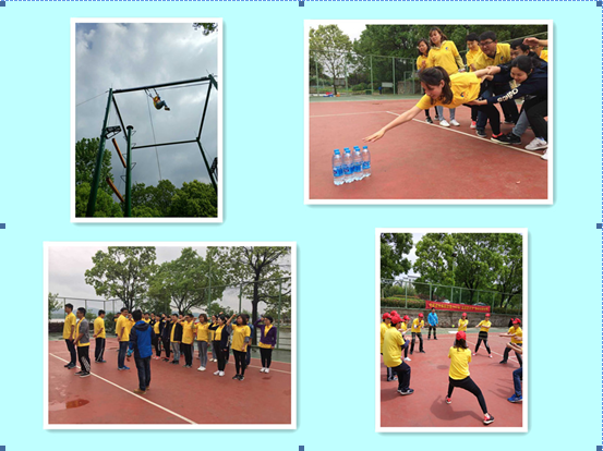 為期一天的拓展訓(xùn)練內(nèi)容包括“破冰起航”、“群龍取水”、“鼓動(dòng)人心”、“智力電網(wǎng)”、“高空跳桿”等活動(dòng)項(xiàng)目。在“群龍取水”比賽中,大家默契十足,合作精神展現(xiàn)的淋漓盡致,通過(guò)隊(duì)友的幫助,沖過(guò)重重阻礙,終于成功取水,比賽緊張,扣人心弦;在“鼓動(dòng)人心”比賽中,隊(duì)員們統(tǒng)一步調(diào),不斷嘗試、不斷總結(jié)、不斷進(jìn)步,團(tuán)隊(duì)合作精神貫穿始終;在“智力電網(wǎng)”比賽中,為了集體榮譽(yù),大家精確計(jì)算,合理謀劃,所有隊(duì)員不怕臟不怕累,都以十足的拼搏精神全力以赴,活動(dòng)場(chǎng)上口號(hào)聲、歡呼聲、吶喊聲、掌聲交織成一片;在“高空抓桿”比賽中,隊(duì)員們以最大的努力克服心里障礙、發(fā)掘自身潛力,冷靜面對(duì)、挑戰(zhàn)自我,深刻體會(huì)了團(tuán)隊(duì)協(xié)作、信任互助和自信的重要性,承受住壓力,戰(zhàn)勝了困難,用汗水書(shū)寫了弘揚(yáng)五四的華彩樂(lè)章。