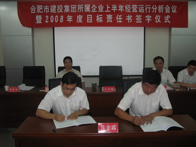 7月23日下午,集團公司所屬企業(yè)上半年經(jīng)營運行分析會議暨2008年度目標責任書簽字儀式在301會議室召開。集團公司領導王昌旭、吳曉東、陸勤航、程世琴,市國資委業(yè)績考核處處長汪浩、稽查員許國漢,八家所屬企業(yè)全體領導班子成員及集團公司相關部門負責人參加會議。會議由集團公司副總經(jīng)理吳曉東主持。