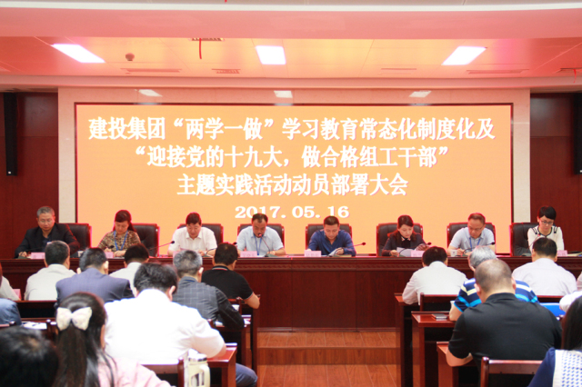 2017年5月16日上午,建投集團組織召開 “兩學一做”學習教育常態(tài)化制度化及“迎接黨的十九大,做合格組工干部”動員部署大會,安排布置“兩學一做”相關工作,統(tǒng)一思想,明確任務,落實責任。集團公司黨委書記吳曉東主持會議并作動員講話。集團公司中層以上領導干部、全體黨員,所屬企業(yè)黨組織書記及黨務、組織人事部門負責人等80余人參加了會議。
