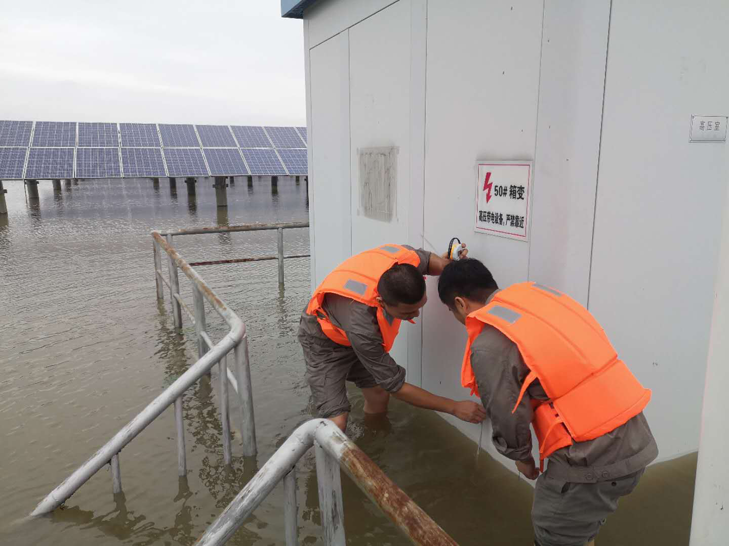 為有效應(yīng)對(duì)防汛突發(fā)事件,金太陽(yáng)公司已在總結(jié)2016年防汛經(jīng)驗(yàn)基礎(chǔ)上,于2020年4月制定了嚴(yán)謹(jǐn)細(xì)致的光伏電站防汛應(yīng)急救援預(yù)案,并加強(qiáng)排查,提早做好準(zhǔn)備,科學(xué)組織防汛應(yīng)對(duì)。按防汛應(yīng)急預(yù)案,抽調(diào)人員24小時(shí)值守綜合樓、升壓站、巡視河堤,實(shí)時(shí)監(jiān)測(cè)水文數(shù)據(jù),調(diào)校運(yùn)行柴油發(fā)電機(jī)、購(gòu)置大功率水泵等設(shè)備,在室外排水溝及室內(nèi)電纜溝處布置防汛設(shè)備設(shè)施,確保主變壓器等相關(guān)電氣設(shè)備安全;同時(shí)配備充足救援物資,全力做好一線防汛抗洪人員安全保障。