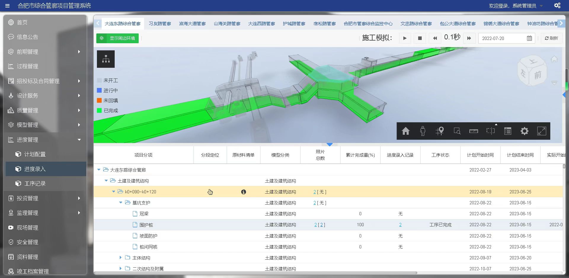 綜合管廊是保障城市運行的重要基礎設施。近年來,管廊公司全力推進合肥創(chuàng)建國家綜合管廊試點城市建設,在建、擬建項目20 個,承接運維任務近20公里,同時積極參與國家層面管廊技術(shù)研究和探索。目前,管廊公司已在綜合管廊市級監(jiān)控中心及黑龍江路、習友路、大連路等管廊項目建設管理平臺上完成課題內(nèi)容應用,其余項目根據(jù)實施進度同步應用。