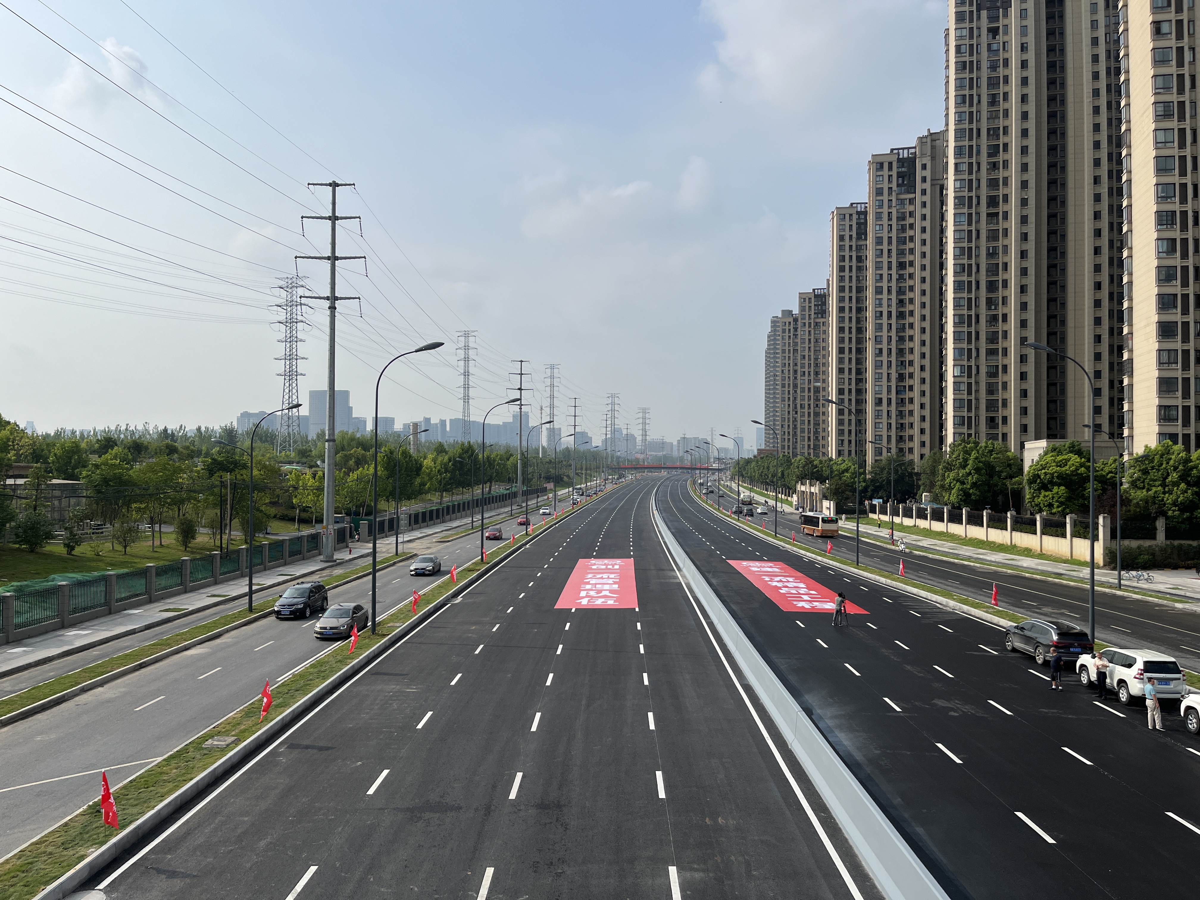 項目建設全過程嚴格落實市委市政府部署要求,在實現(xiàn)交通通達順暢的同時,不斷優(yōu)化道路沿線環(huán)境,方便市民生產(chǎn)生活,做到統(tǒng)籌兼顧。該路段分別于慈光路、南門小學新建2座天橋,溝通居民區(qū)和京臺調(diào)蓄池北側游園,方便居民過街和休閑;同時,正在加快推進道路東側既有110Kv架空線隨本工程一并入地。屆時周邊環(huán)境將得到進一步提升,確保道路改造有“面子”更有“里子”,切實提升市民出行滿意度和幸福感。
